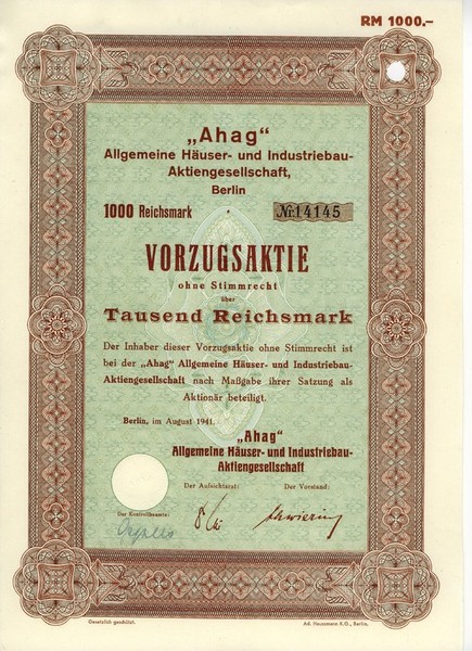 1937 "Ahag" Allgemeine Häuser- und Industriebau-AG