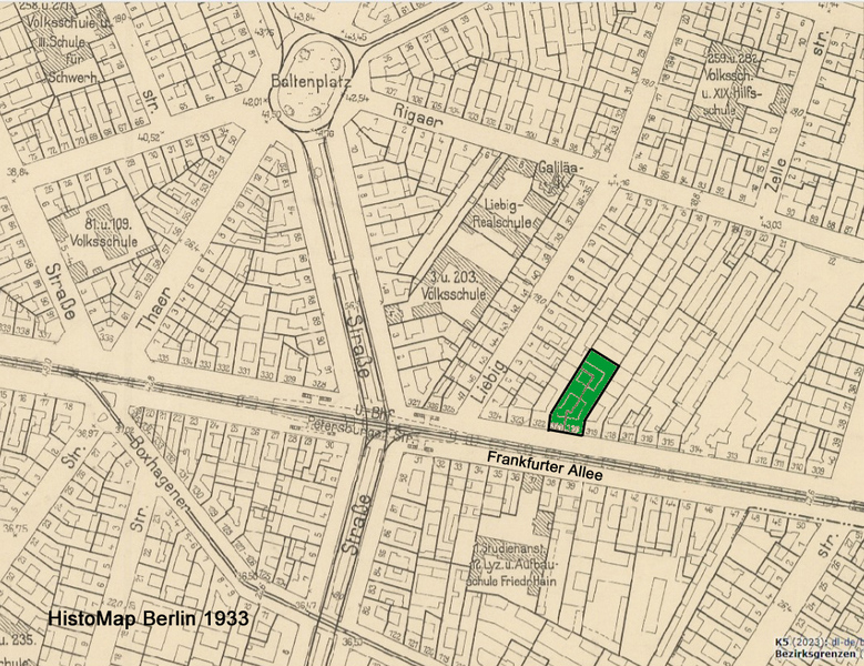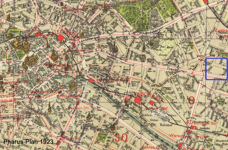 Das Gebiet um das ehemalige Grundstück Frankfurter Allee 320 / 321 der Gesellschaft wurde nach dem Zweiten Weltkrieg in der DDR-Zeit völlig neu arrondiert. Es befand sich in etwas der Höhe der heutigen