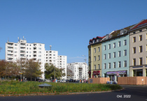 Der Moritzplatz im Jahr 1910 und 2022 - Blick vom Areal der Grundstücks-AG auf den Platz