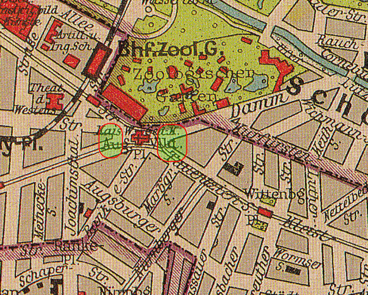 Die letzten Bilder zeigen den Kurfüstendamm Nrn. 1 bis 9 (Eingang zum Zoo), heute Budapester Straße.