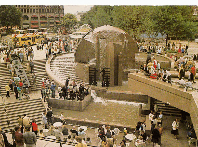 Vor dem Europa Center steht der "Wasser-Klops" (letztes Bild). Im sogenannten Sommerloch des Jahres 2013 wurde ernsthaft diskutiert, den "Klops" wieder abzureißen, um die Eingangssituation zu der Laden-Passage im Untergeschoß zu verbessern