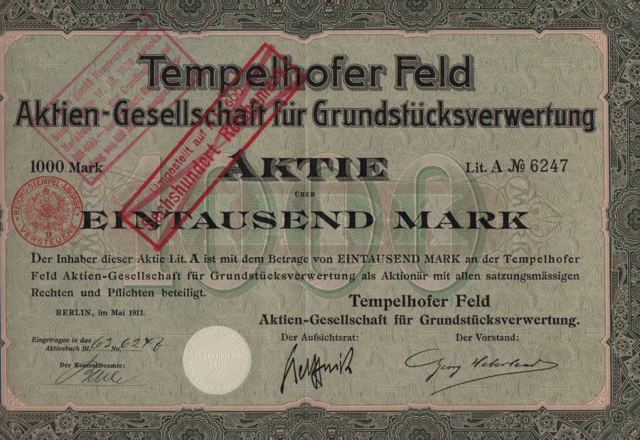 Emission aus 05.1911, unterzeichnet von Georg Haberland als Vorstand (Link)