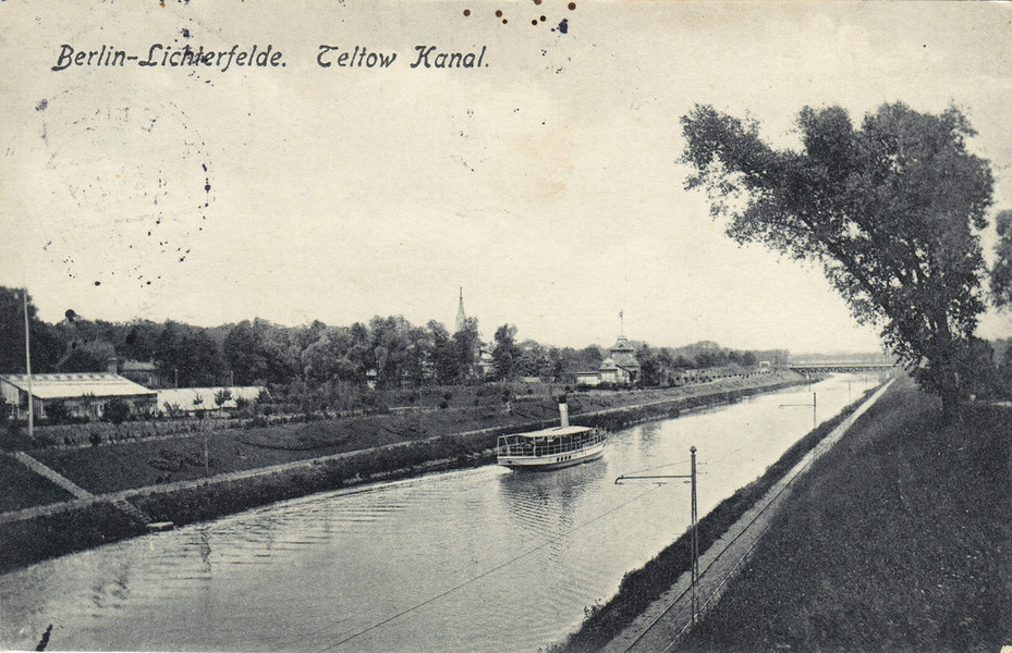 AK 2. Der Teltow-Kanal um 1915 - allerdings am anderen Ende bei Klein Glienicke (Wannsse, OT ein von Zehlendorf) und Babelsberg bei Potsdam mit der Mündung des Kanals in der Havel