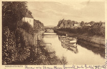 AK 3 + 4. Auf der Ansichtskarten aus 1914 und 1927 sind die Schienen und Oberleitungen für die elektrische Treidellokomotive deutlich zu erkennen.