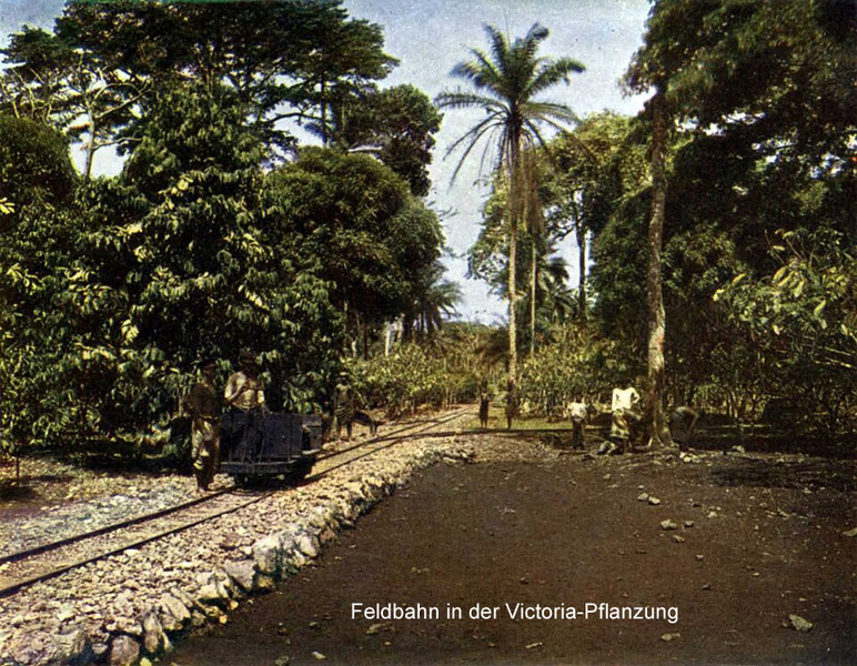 1910 baute die Gesellschaft eine eigene Kleinbahn mit einer Länge von 66 km. Diese verband den Küstenort Victoria mit dem Ort Soppo. Dazwischen lagen die Plantagen der Gesellschaft. Neben dem Transport der Erzeugnisse der Gesellschaft wurden auch Personen transportiert – sicherlich nicht in 1-Klasse-Waggons.