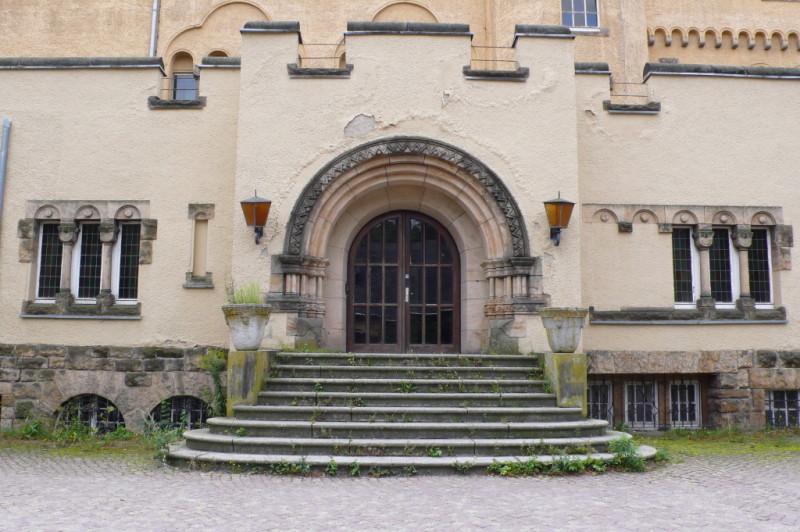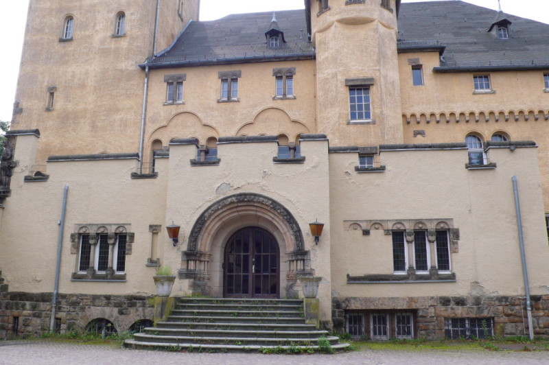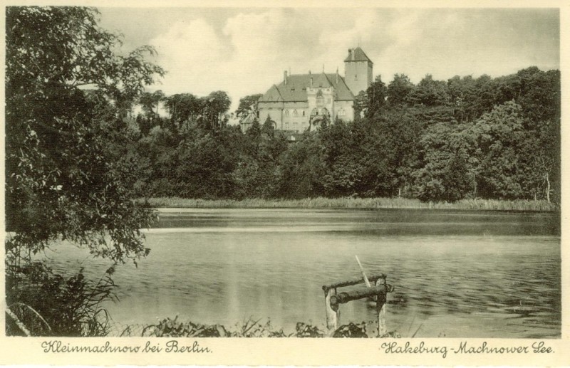 Die Hakeburg am Machnower See, ca. 1940 und im Jahr 2011. Die Burg wird nicht mehr bewirtschaftet und steht zum Verkauf.