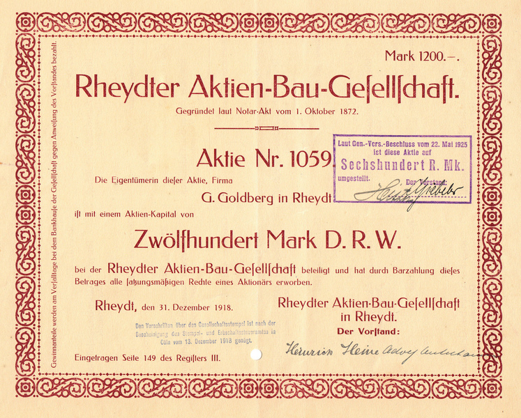 Rheydter Actien-Bau-Gesellschaft, 1876, 1898, 1918,1950