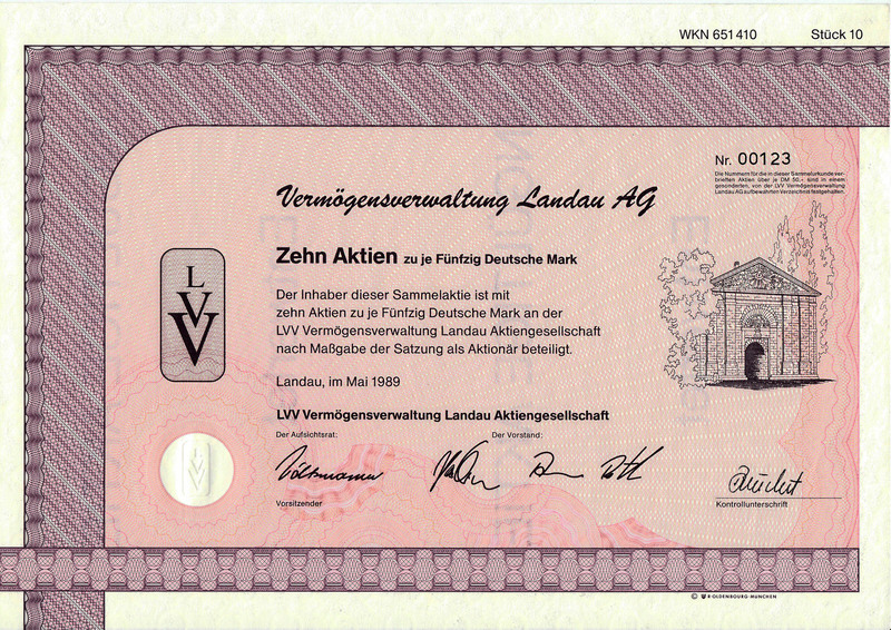 LVV Vermögensverwaltung Landau AG, Landau Mai 1989